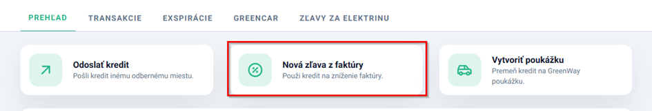 1. Vo Vašom zákazníckom účte kliknite na tlačítko "Nová zľava z faktúry".